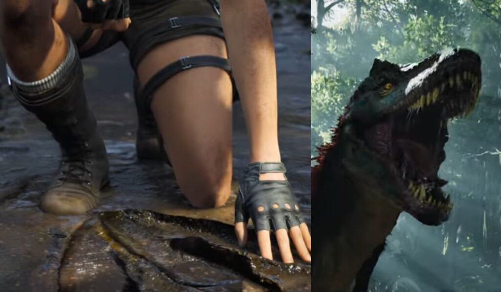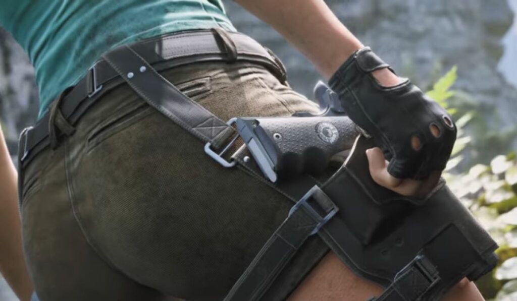 Lara Croft appears in the trailer with a refined character model that blends classic design elements with modern realism. Her movement animations are fluid and precise, emphasizing athletic traversal and environmental interaction. Climbing cliff walls, leaping across collapsing stone bridges, and maneuvering through underwater passages highlight the updated traversal system that fans have been anticipating.